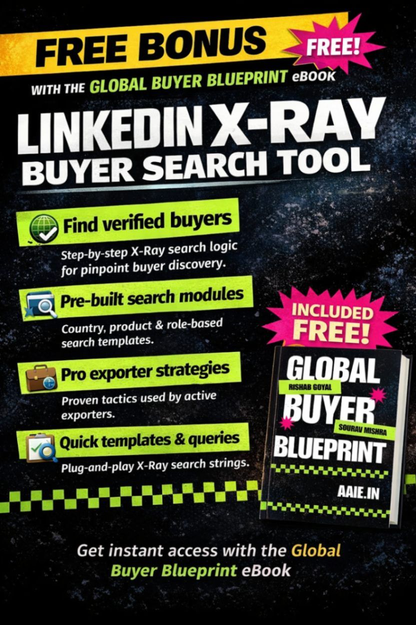 Disclaimer: The Global Buyer Blueprint and the tools included with it are intended for informational and educational use only. While strategies are based on real export experience, we do not promise or imply guaranteed results, international buyers, or business profits. Users are responsible for their own due diligence, compliance, and decision-making. AAIE is not liable for any losses or outcomes resulting from the implementation of this material.